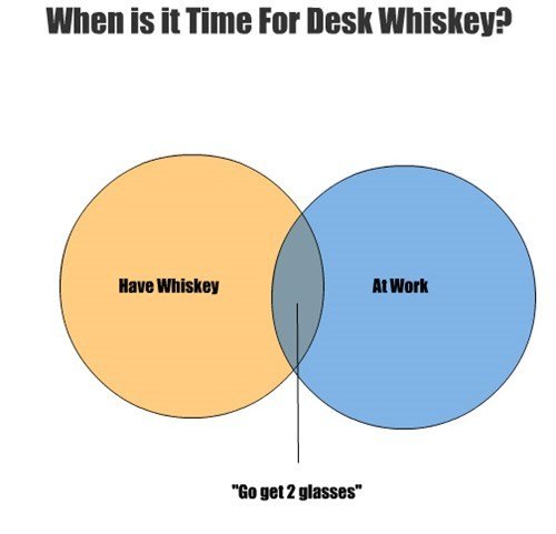 I am not saying you should start to drink on the job. But there are rituals to work, and there are rituals to whiskey. I’ll get Mr. Venn to draw you a diagram, and we can hang out in the intersection for a while.